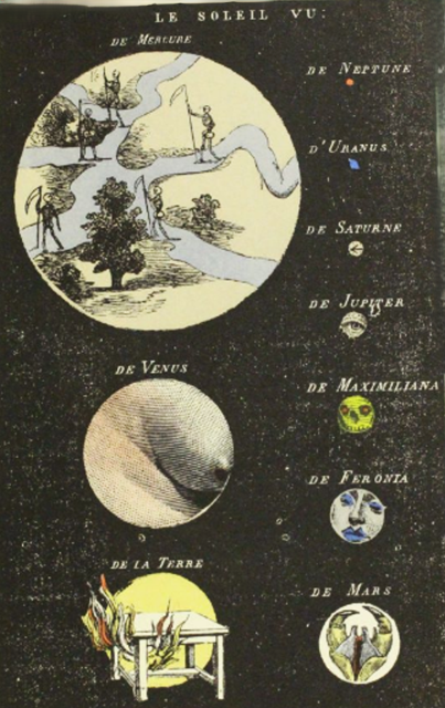 Макс Эрнст давно знал о существовании астероида (65) Максимилиана, потому что в одном из его коллажей 1931 года, вошедших затем в сборник Поля Элюара, с изображением Солнца, окруженного планетами, фигурирует Максимилиана. Отметим, что данная публикация вышла в свет до открытия астероида (1217) Максимилиана 13 марта 1932 года[5] (ил. 5).