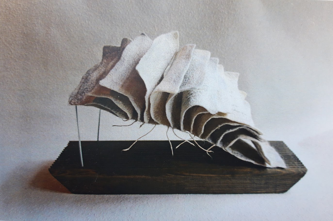 Применение войлока имеет в работе Власовой принципиальное значение. Это один из древнейших текстильных материалов, исторически связанный с понятием тепла, защиты и долговечности. В символическом плане он оказывается «материей памяти», которая хранит следы прикосновения рук, трудовых практик и культурных традиций. Власова обращается к этому материалу как к медиатору между прошлым и настоящим, личным и коллективным, телесным и духовным. «Страницы жизни» Власовой можно рассматривать как опыт материализации памяти в тактильной, «живой» форме. Пожухшие краски, едва читаемый шрифт, потрепанный временем корешок и запыленные страницы превращают произведение в пространственно-временную метафору человеческого существования – хрупкого и в то же время непрерывного.