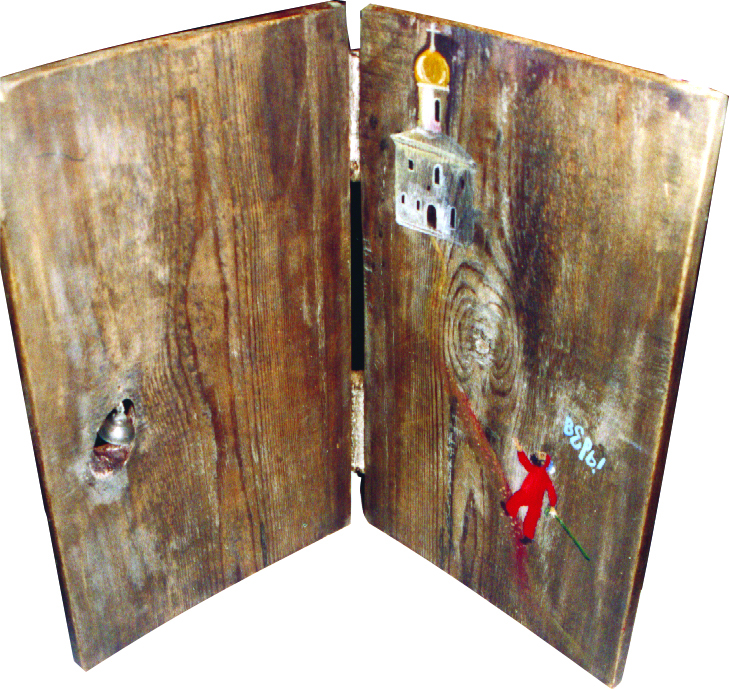 Во-вторых, книга художника использует и сохраняет традиции печатной графики, издательской культуры и многих прикладных ремесел. Так, например, легендарный художник из Екатеринбурга Б.У. Кашкин (Евгений Малахин) создавал небольшие складни на сосновой коре (ил. 1) или на старых досках (ил. 2), апеллируя к традициям берестяных грамот, иконописи и лубка; известный скульптор и литератор Игорь Иогансон делает послания на гипсовых табличках (ил. 3) или вырезает свои тексты на дереве; российско-итальянская поэтесса и художник Эвелина Шац запекает свои стихи на керамике (ил. 4), а скульптор и бук-артист Фернанда Феди использует в своих книгах авторскую керамическую клинопись (ил. 5); многие художники продолжают рукописные традиции священных свитков и т.д.