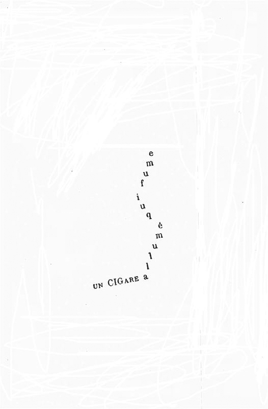 Это напряжение, эта синергия диалога, на мой взгляд, и есть самое главное в визуальной поэзии и в книге художника. Например, в короткой каллиграмме Аполлинера «сигарета дымится» (ил. 18) текст вне рисунка полностью теряет свой посыл и становится практически бессмысленным – равно как и рисунок дымящейся сигареты без текста не несет никакой смысловой нагрузки. Это стихотворение обладает ярко выраженной эмерджентностью, в нем появляются принципиально новые качества, не присущие составляющим его частям. Мне кажется, пример этой чисто игровой работы очень важен: здесь Аполлинер, показав, как вдруг, неким волшебным образом, соединение двух ничего не значащих по отдельности составляющих в совокупности начинает работать, продемонстрировал самую суть визуальной поэзии.