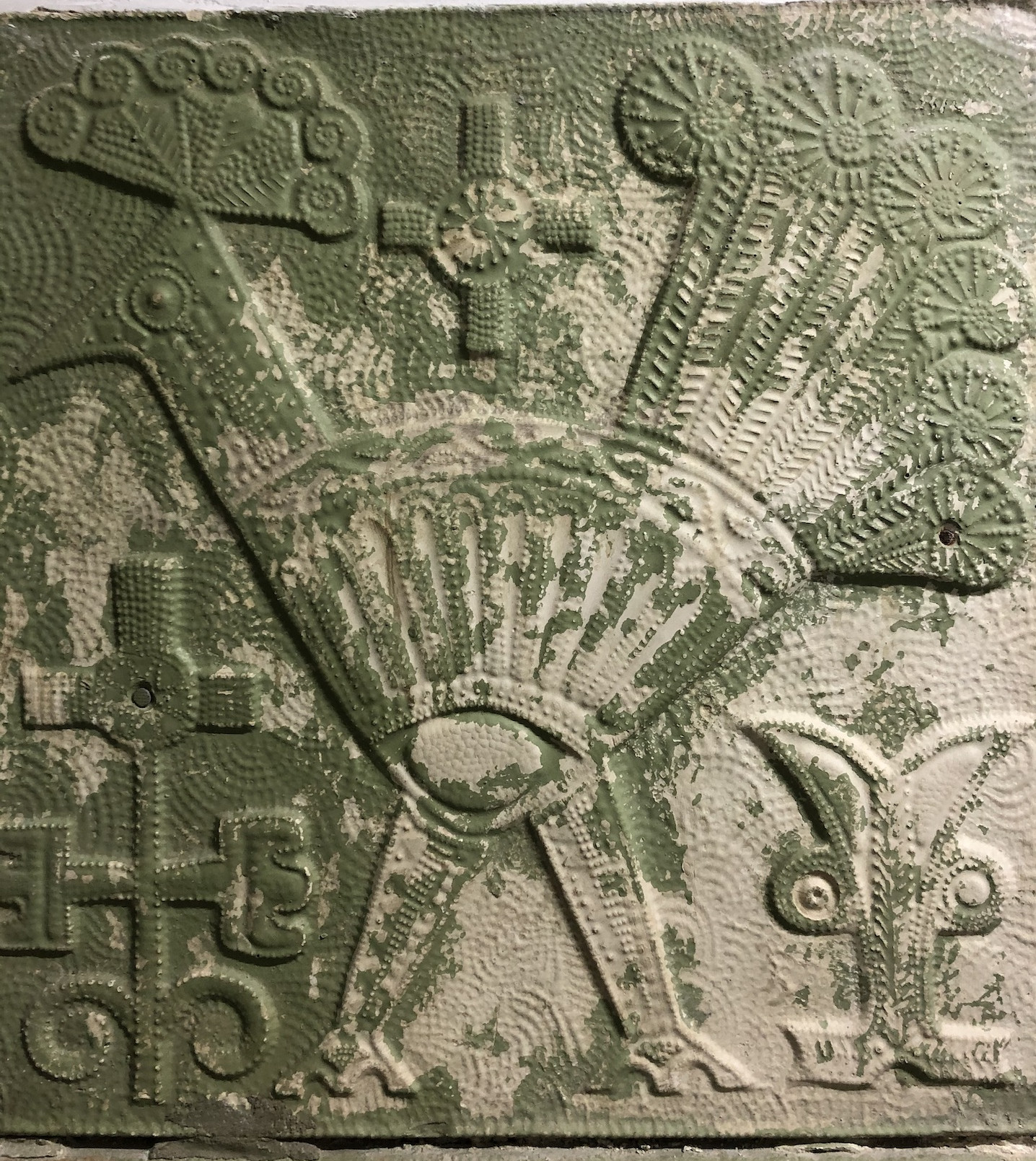 Как нам удалось выяснить, доходный дом Е.А. Скальского, построенный в конце XIX века, является памятником архитектуры и историческим объектом, сохраняющим элементы искусства того времени. В 1920-х годах в этом доме находилась редакция журнала «Красная новь», в которой работал А.М. Горький. Здесь бывали поэты А.А. Ахматова, В.В. Маяковский и другие. Чердачные и подвальные помещения дома занимали мастерские художников. Согласно некоторым данным, в подвале дома работал грузинский скульптор, а позже в доме размещалась мастерская краснодеревщика. Подтверждения этой информации нам найти пока не удалось, однако обнаруженная рядом с мастерской серия панно отражает символику и элементы, характерные для грузинской культуры.