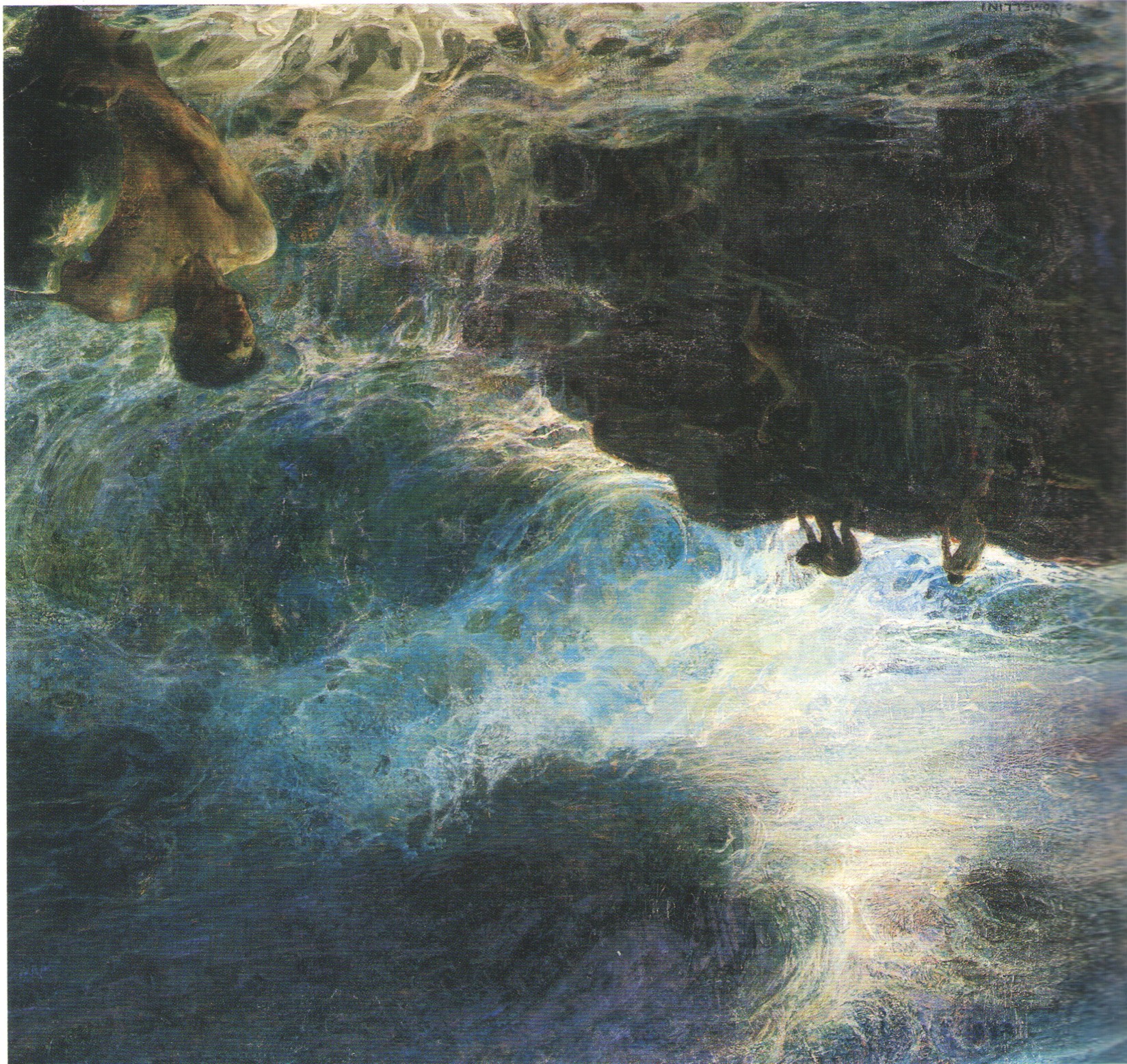 Новизна живописи эпохи либерти была также связана с обращением к античности как мечте и тайне, в переживании которых важную роль играло индивидуальное воображение. Например, художник из Ливорно Плинио Номеллини (1866–1943) в своих картинах сочетал натурные наблюдения с образами античной мифологии: так, образ обнаженного юного сына он связал с мифологическим Вакхом («Маленький Бахус», 1909‒1910, Галерея современного искусства, палаццо Питти, Флоренция) (ил. 3), а знаменитую танцовщицу Айседору Дункан[10], с которой был хорошо знаком, изобразил в образе радостной сирены, бегущей среди сверкающей морской пены («Тирренская радость», 1903, частное собрание). Античные мифологемы наблюдаются и в таких работах художника, как «Сокровища моря» (ок. 1901, Национальная галерея, Рим) (ил. 4) и «Красная нимфа» (ок. 1900, частное собрание) [Nomellini 2008]. Его картину-панно «Новые люди» (1909, Галерея современного искусства, Нерви, Генуя) также следует включить в этот ряд с точки зрения смысловых кодов, где античные мифологемы встречаются с индивидуальным мифотворчеством. В этой работе Номеллини изобразил праздничную процессию с детьми и молодыми людьми, которая возникает из ниоткуда и движется в никуда. Эти «новые язычники» размещены в условном, зыбком, наполненном светом и цветом пространстве. Важные идеи того времени угадываются в энергичных движениях преодолевающих дорогу людей, которых сопровождают красочные венки из цветов, вторящие им круглящиеся облака, символически «горящие» красным цветом развевающиеся ткани и ленты. Здесь также заметно влияние стиля либерти, который итальянские исследователи нередко называли «флореале» («цветочным»), имея в виду использование художниками вьющихся растительных и цветочных форм. В этом панно Плинио Номеллини представил в романтическо-символистской форме свою интерпретацию возвращения золотого века, применяя синтетический принцип, сочетающий элементы натурного наблюдения, экспрессию и технику дивизионизма.