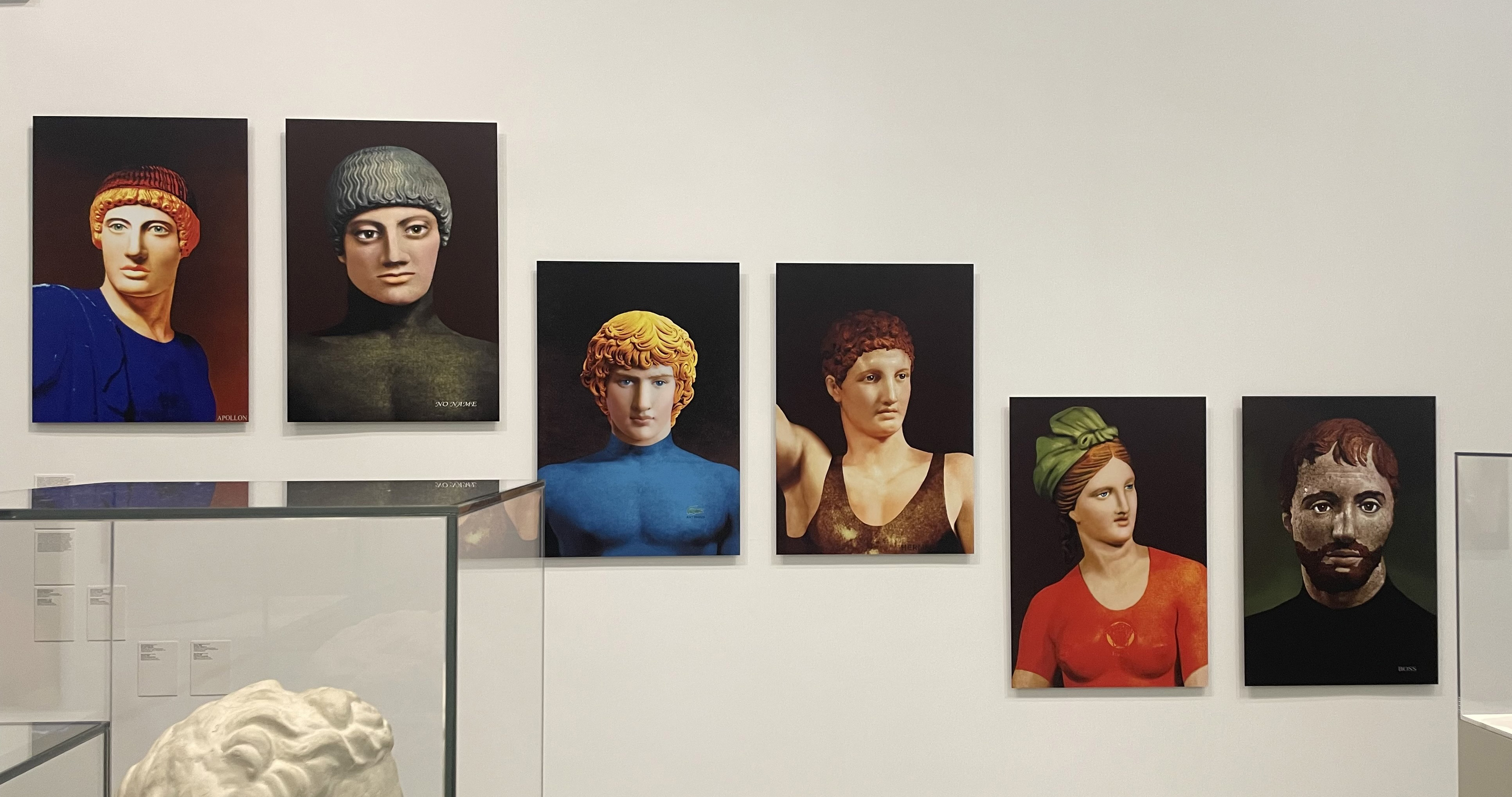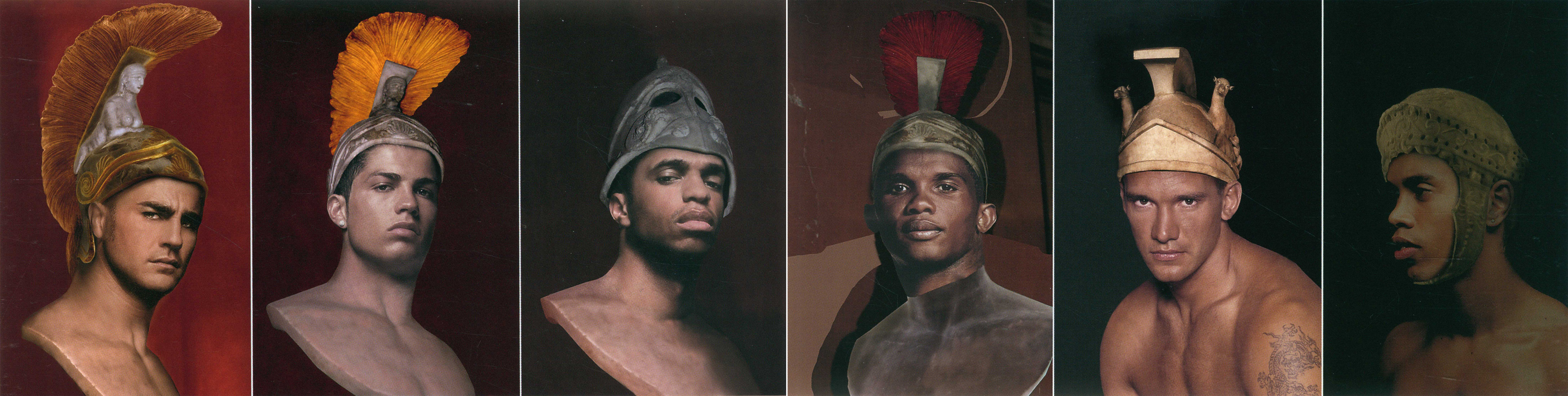 Именно эта гламурность – неестественность, лоск, стеклянность, уподобление живого неодушевленному – и делает персонажей серий «Модели» и «Легионеры» столь похожими на образы из глянцевых журналов. Обнаженные, хоть и взятые в кадр лишь погрудно, но от этого не менее сексуальные, «Легионеры» могли бы оказаться на знаменитом календаре австралийских пожарных или рекламировать нижнее белье вместе с Дэвидом Бэкхемом. Гламурны на грани китча и образы проекта «Модели», в котором бюсты античных статуй раскрашены. А ведь греческие статуи и правда были раскрашены! Художница говорит, что, вернув им цвет, она узнала в них знакомых соседских парней. «Антиной», якобы рекламирующий одежду Lacoste и похожий одновременно на супермена в синем трико, греческого атлета и манекен, попадает на обложку журнала, что, по мнению многих искусствоведов, и есть лучшее признание воплощенного в нем духа современности – глянцевой или античной, вульгарной или выразительной. Именно его портрет в анфас демонстрирует явление героя в современности.