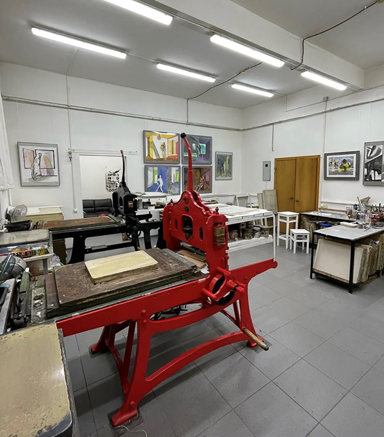 Отдельного внимания заслуживает сама мастерская ЛИТО, ставшая уникальным пространством для творческих поисков. Студия ЛИТО была основана автором (Смирновой Е.Б.) 19 лет назад на базе известнейшей в прошлом экспериментальной мастерской литографии Городка художников на Верхней Масловке. К сожалению, в 1990-х ‒ начале 2000-х мастерская пришла в упадок и не функционировала в связи с прекратившимся финансированием, однако помещение осталось в ведении Московского союза художников, и часть оборудования не была утрачена, хоть и требовала серьезного ремонта. На сегодняшний день это единственная профессиональная (не учебная, как мастерские в вузах) мастерская подобного рода в Москве – полностью оснащенная всеми необходимыми материалами для работы. Мастерская предоставляет возможность работать в технике литографии всем желающим, проводит выставки и мастер-классы, собирает коллекцию печатной графики (ил. 1).