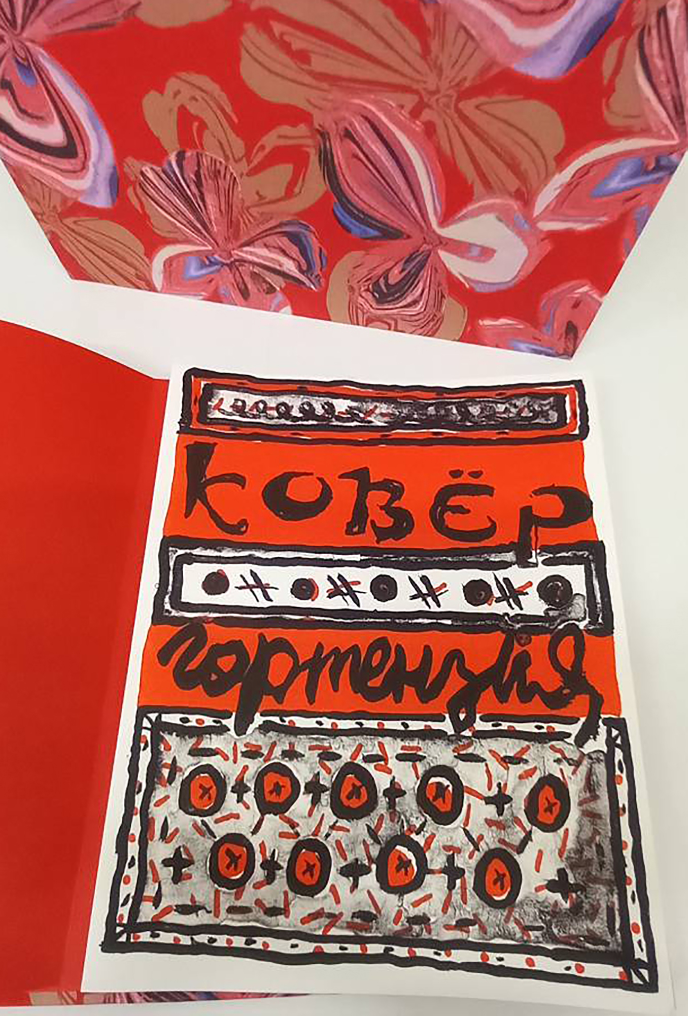 Книга Сергея Шутова «Ковер Гортензия» ‒ стихотворение поэта-обериута Александра Введенского. Для Сергея это был первый опыт работы в технике литографии, однако самобытность стиля и колористического решения также абсолютно узнаваемы. Метафоричность образов и сквозного яркого цвета создает сложный, богатый стилевой ансамбль (ил. 22).