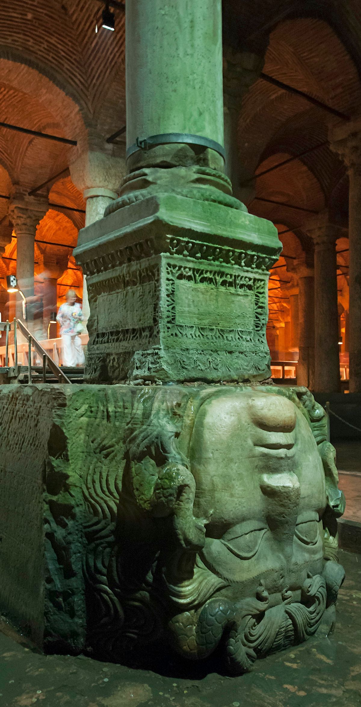 Общий характер фигуры с заложенными за голову руками напоминает о теламонах, а «шаг в вечность» восходит к египетским статуям. Матвеев также считал египетские статуи образцом динамики в скульптуре – динамки внутренней, понимаемой как готовность к движению. Архитектурное, глубоко логичное построение формы отличает и «Давида» (1996) (ил. 7). Свободная, устойчивая поза Давида, опирающегося на голову Голиафа как на своего рода стилофор, заставляет вспомнить ордерное решение в Цистерне Базилике (ил. 8). Сравнивая эту работу с учебными заданиями конца 1920-х годов, с которыми Каминкер не был знаком, можно утверждать, что сходство объясняется принципиальным единством тектонического мышления.